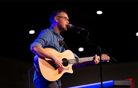 Peterson shared with students about his early success in the mainstream Christian music industry as well as disappointments, such as being dropped from his label and choosing to carve out a career path that allowed him to make the kind of music he wanted to make. For Peterson, that meant finding community with other artists who shared a similar vision through groups like the Square Peg Alliance and the Rabbit Room, a blog community created by Peterson and his brother, author A.S. “Pete” Peterson, as a way to foster Christ-centered community and spiritual formation through the arts.