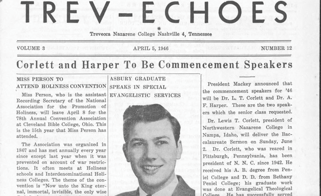 The TrevEchoes, the official student newspaper at Trevecca, was first published on a mimeograph machine in 1944. Howard Wall was the first editor.